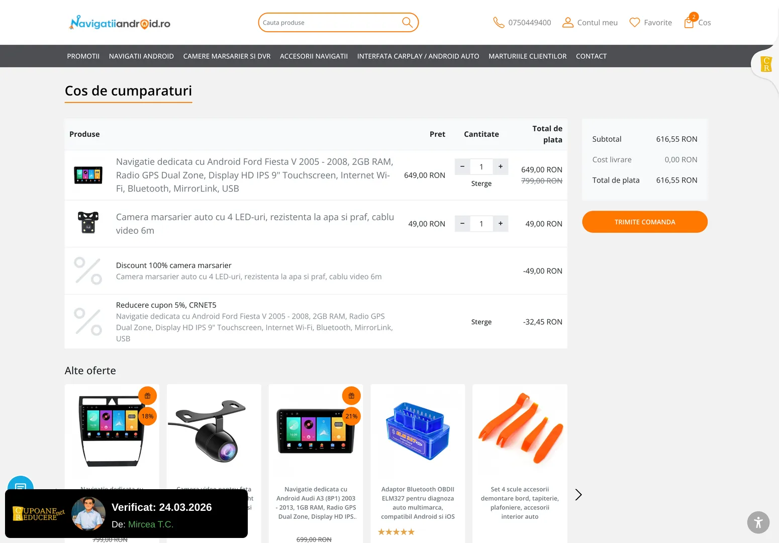 Mircea T.C. a verificat și confirmat codul prin aplicarea acestuia în coșul de cumpărături ·