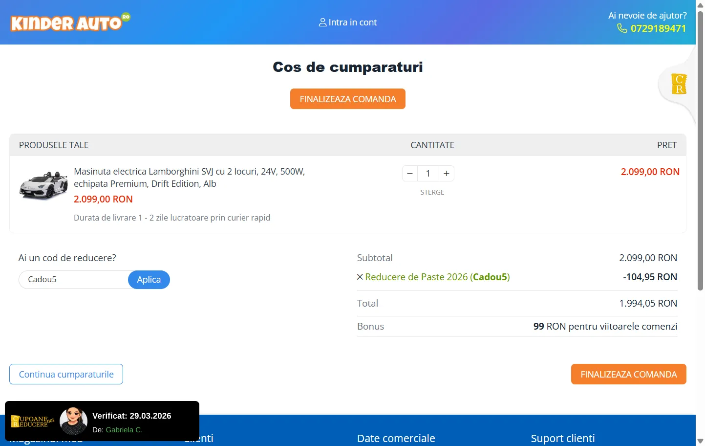 Gabriela C. a verificat și confirmat codul prin aplicarea acestuia în coșul de cumpărături ·