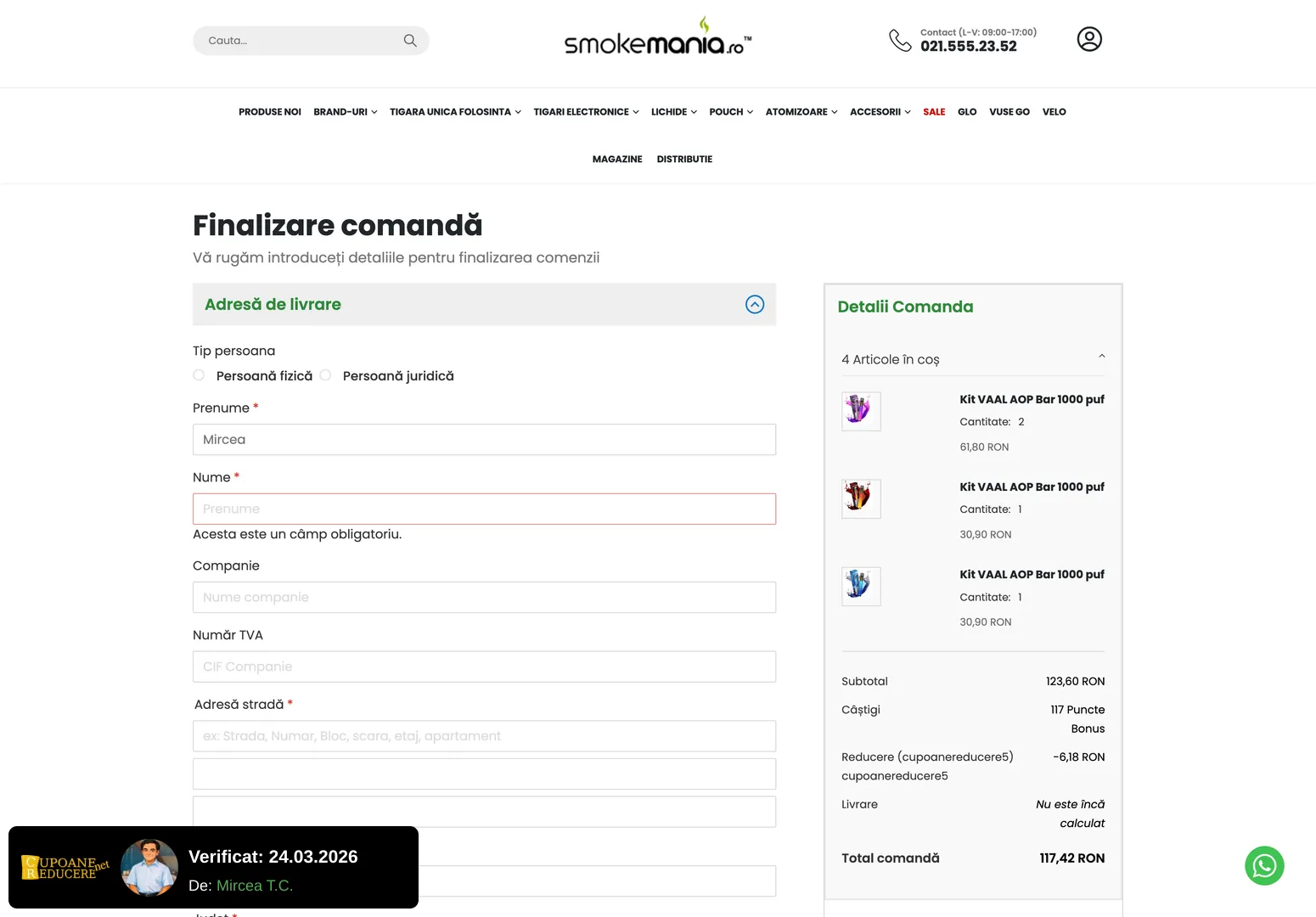 Mircea T.C. a verificat și confirmat codul prin aplicarea acestuia în coșul de cumpărături ·