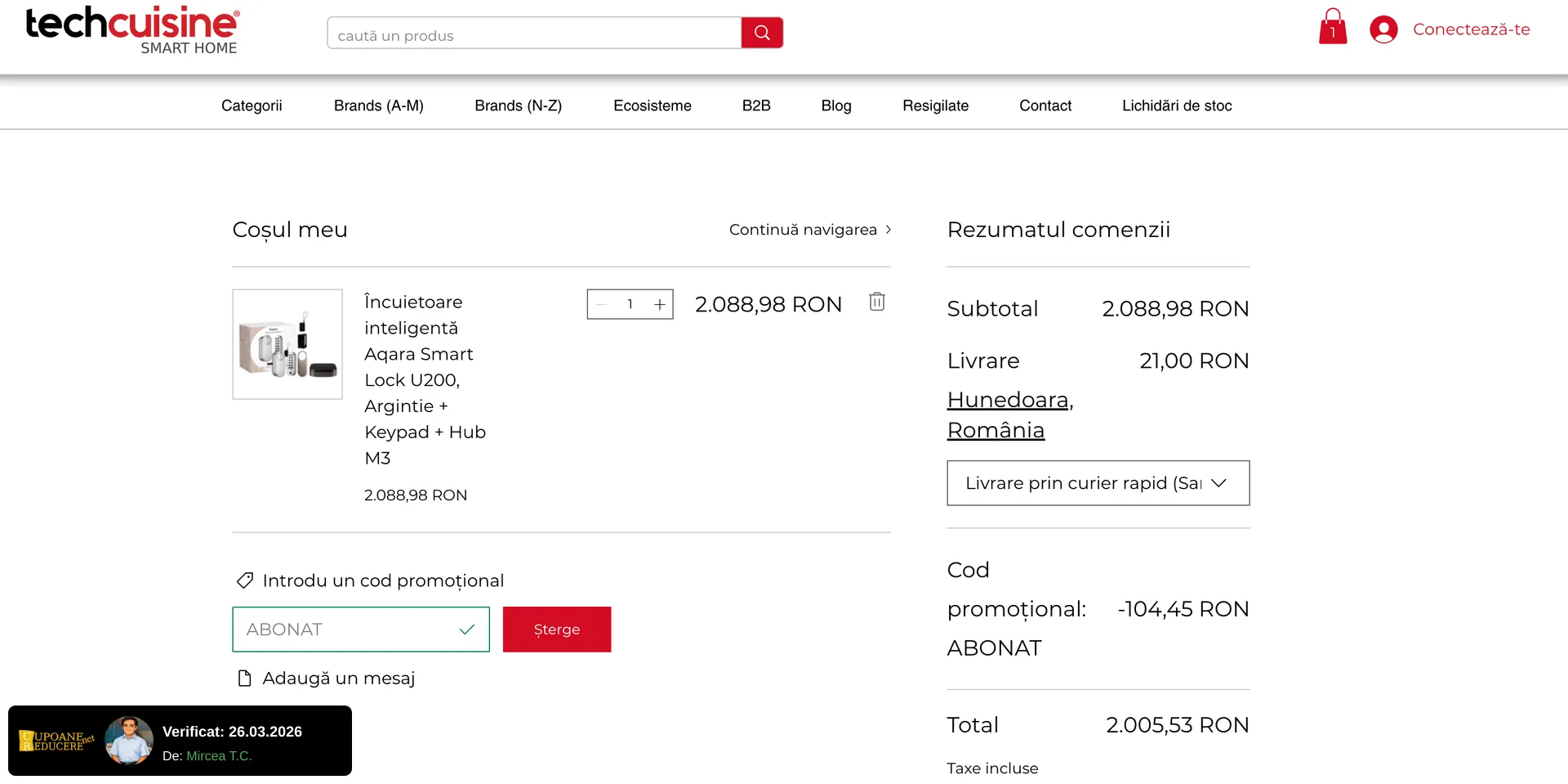 Mircea T.C. a verificat și confirmat codul prin aplicarea acestuia în coșul de cumpărături ·